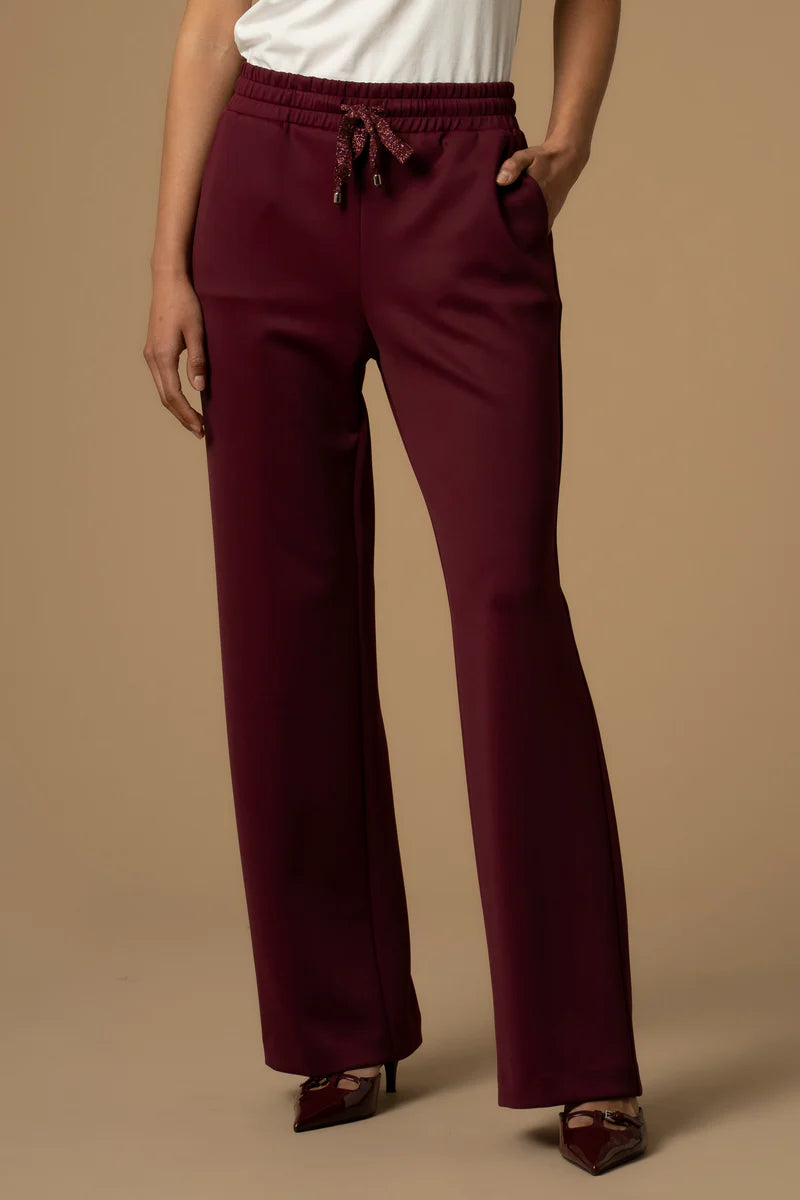 Stile e vestibilità regolare per questi pantaloni in tessuto effetto lucido con coulisse fantasia, gamba dritta e comodo elastico in vita.