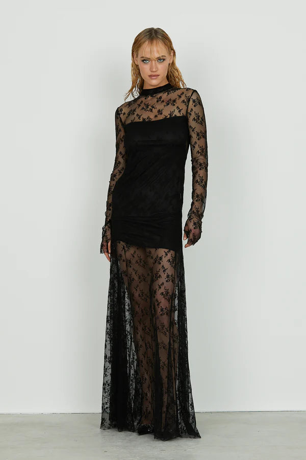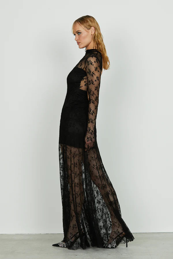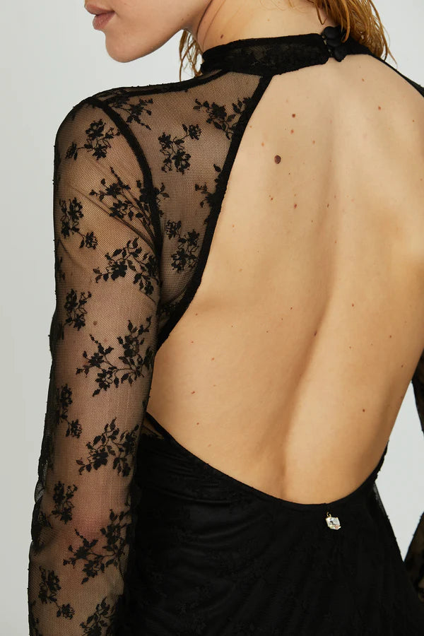 RELISH Abito SUARE lungo manica lunga pizzo scollato dietro