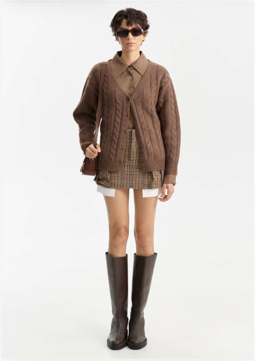 Cardigan marrone vestibilità over con trama intrecciata e bottoni marroni