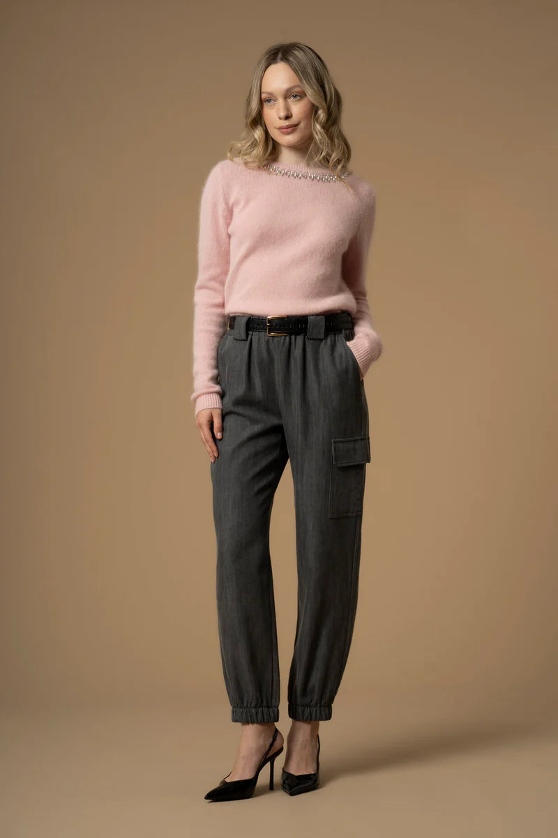 Eleganti e ricchi di stile, questi pantaloni in stile parachute sono caratterizzati dalla caviglia con elastico e da un'ampia tasca con pattina laterale. Il modello presenta vita con passanti, cintura e pinces.